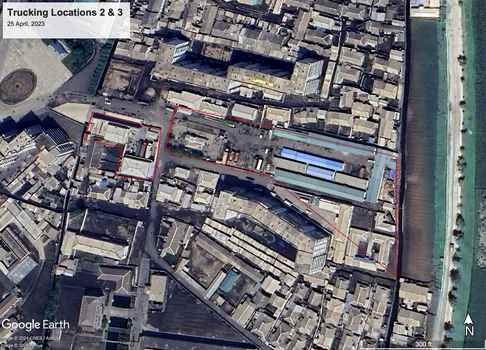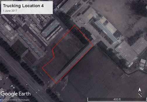 Although it was outside of our focus on SPVs, our team did notice significant development related to trucking within our area of interest. Since 2017, four locations within the city center have been converted from vacant lots or agricultural land into walled compounds featuring large warehouses and yards presumably used for loading and unloading large trucks. The series of before and after images below visualizes this development.